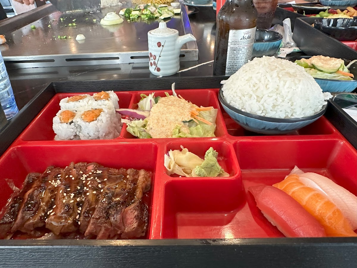 Excellent server & chef. Teppanyaki is excellent & prices are not bad at all. Come in early around 4-6pm for the happy hour. It'll be worth it! Atmosphere is nice & parking is accessible.