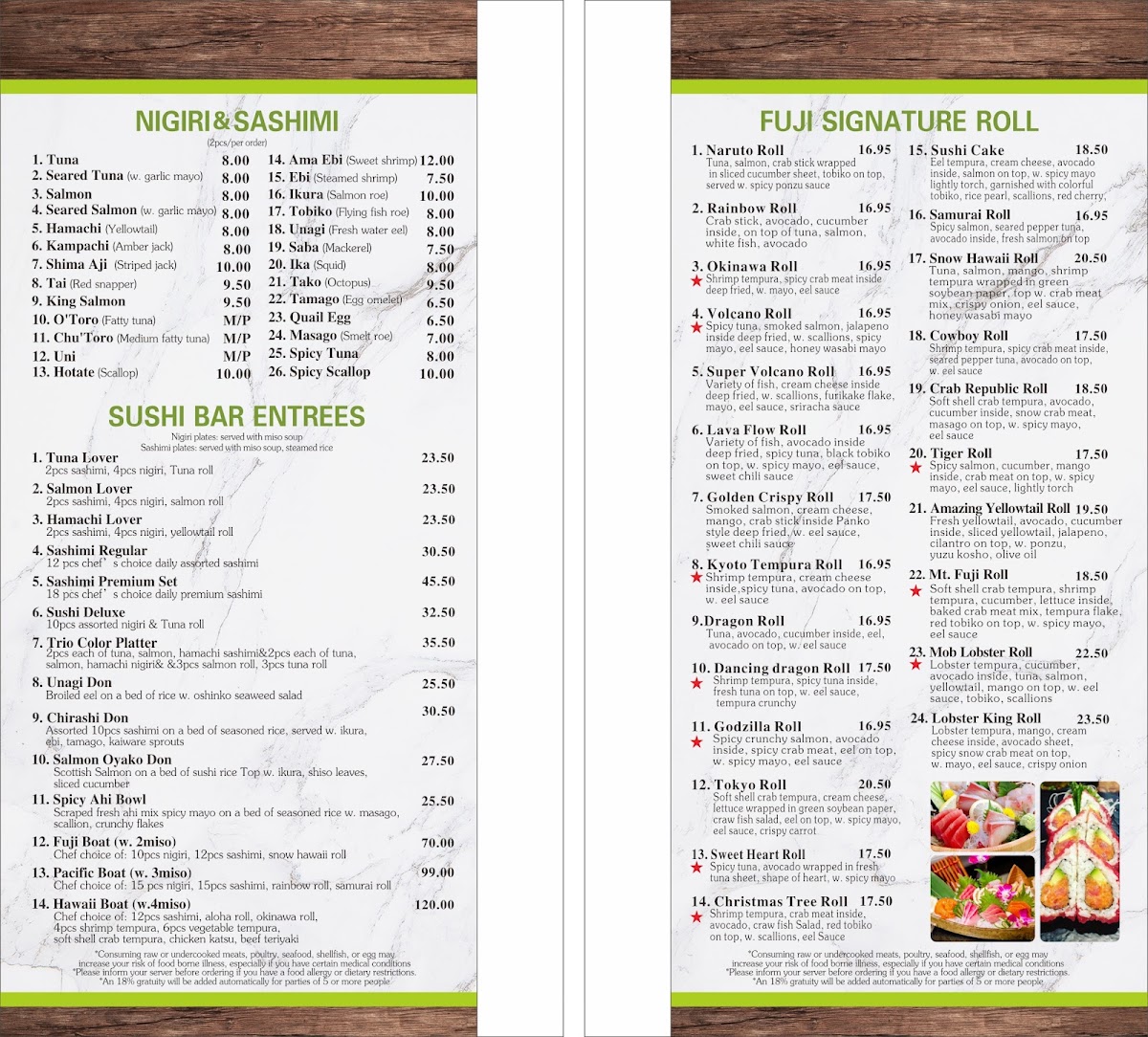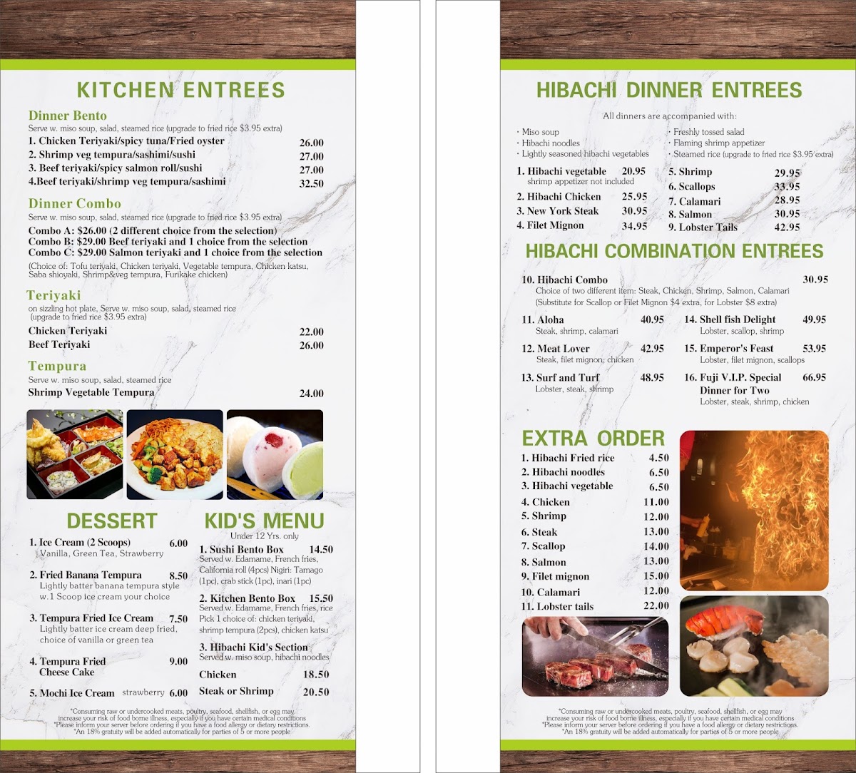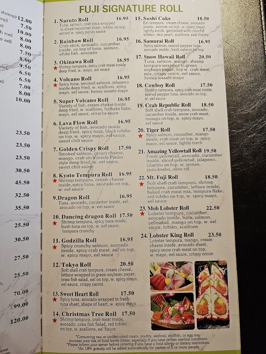 Fuji Sushi and Teppanyaki Menu