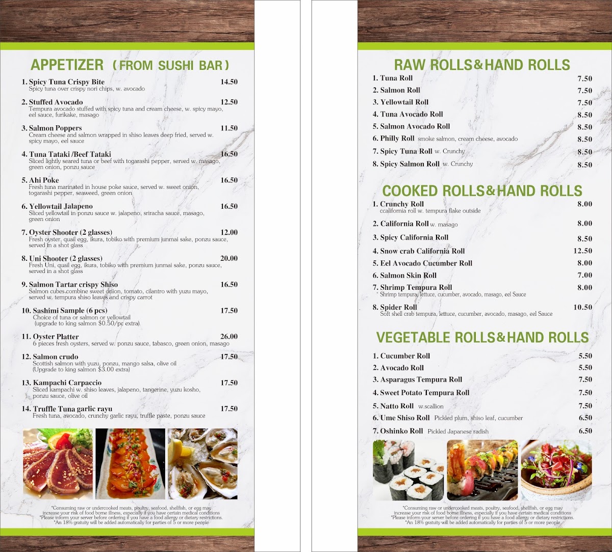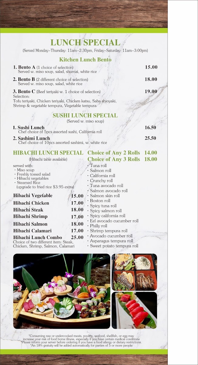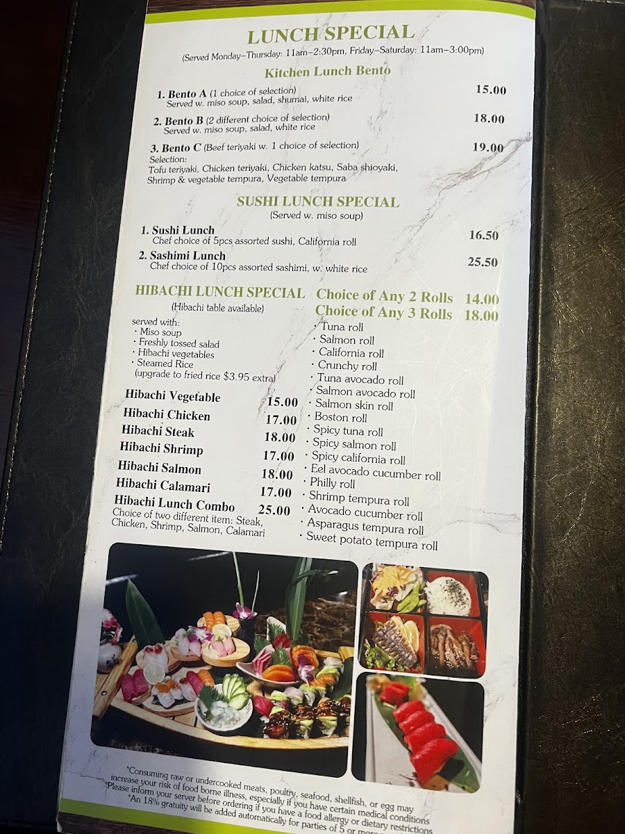 Fuji Sushi and Teppanyaki Menu
